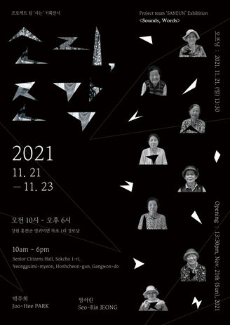 이번 전시에서는 조각조각 쌓인 할머니들의 말소리를 통해 그들의 삶을 엿볼 수 있다. 박주희 작가는 인터뷰 내용의 에피소드와 그 시기와 공간과 관련된 할머니들의 노래를 영상에 담아내었다. 정서린 작가는 할머니들의 공통적인 이야기를 모티브로 삼아 설치, 드로잉 작업을 진행했다. 작가들의 작품을 통해 관객들은 소리 속에 담겨있던 할머니들의 인생 한 조각을 알게 될 것이다.